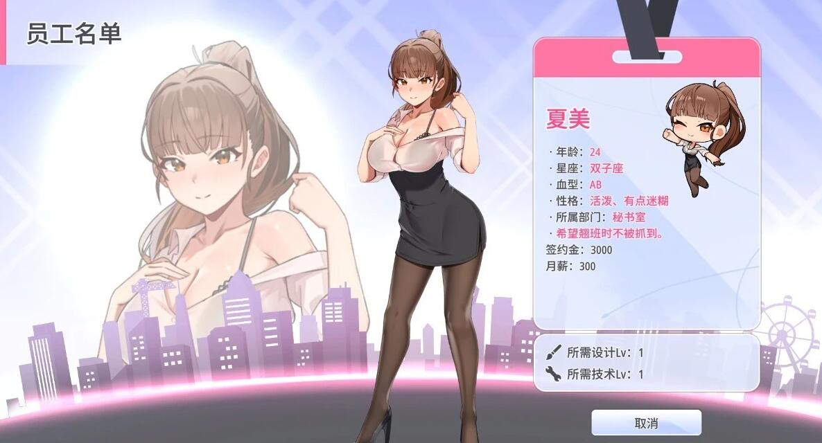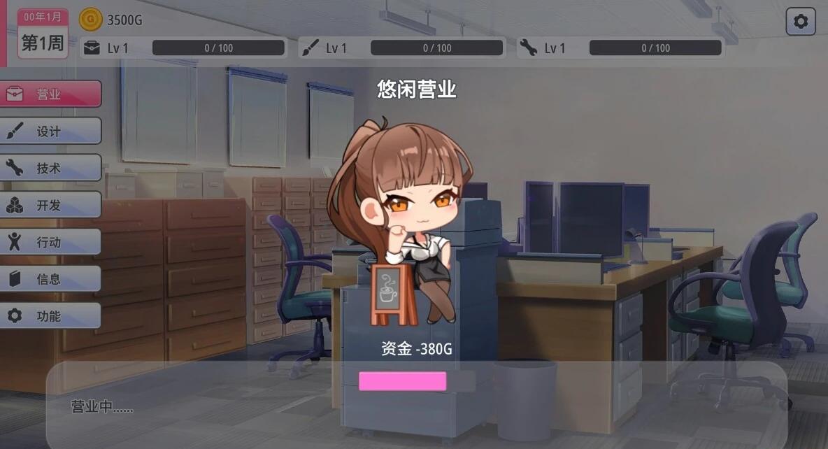 1.点击鼠标,提升营业、设计、技术各等级。