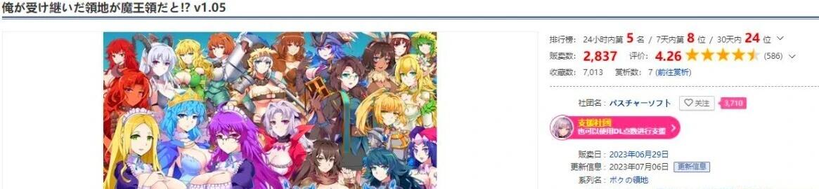 这是【パスチャーソフト】在23年7月6日发布的一款后宫领地争夺SLG。