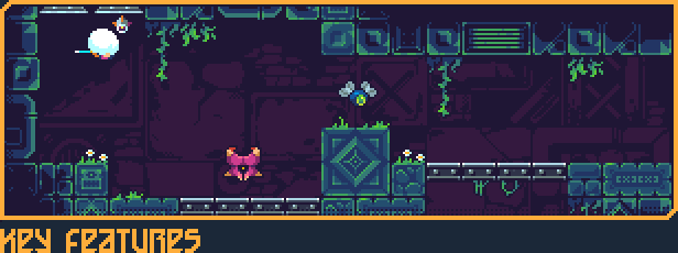《灾厄逆刃》采用了鲜亮明快的像素画风,操纵主角在狭小地牢里闪转腾挪,伴随着Joonas Turner作曲的动感BGM,尽享类银河恶魔城的狂野粗豪!