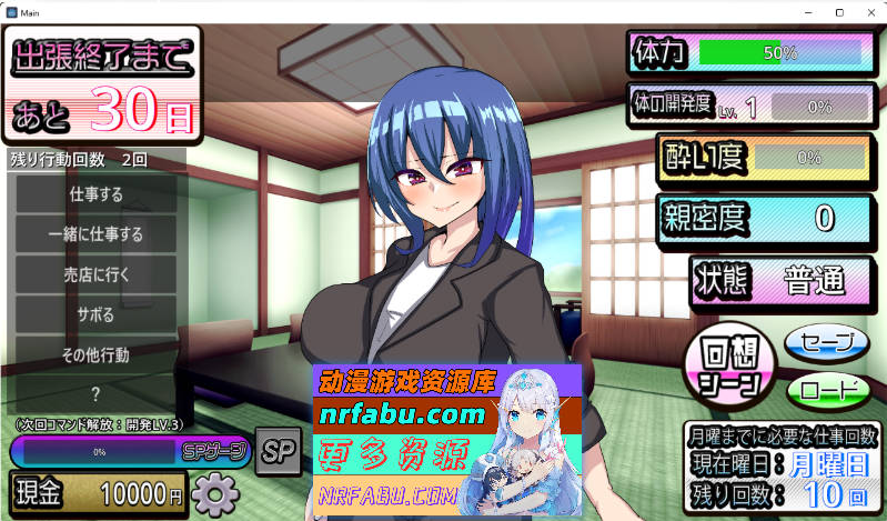 这是一款模拟调教游戏,分为白天、夜晚、深夜○三个部分,玩家可以通过各种行动逐步调教她,包括: