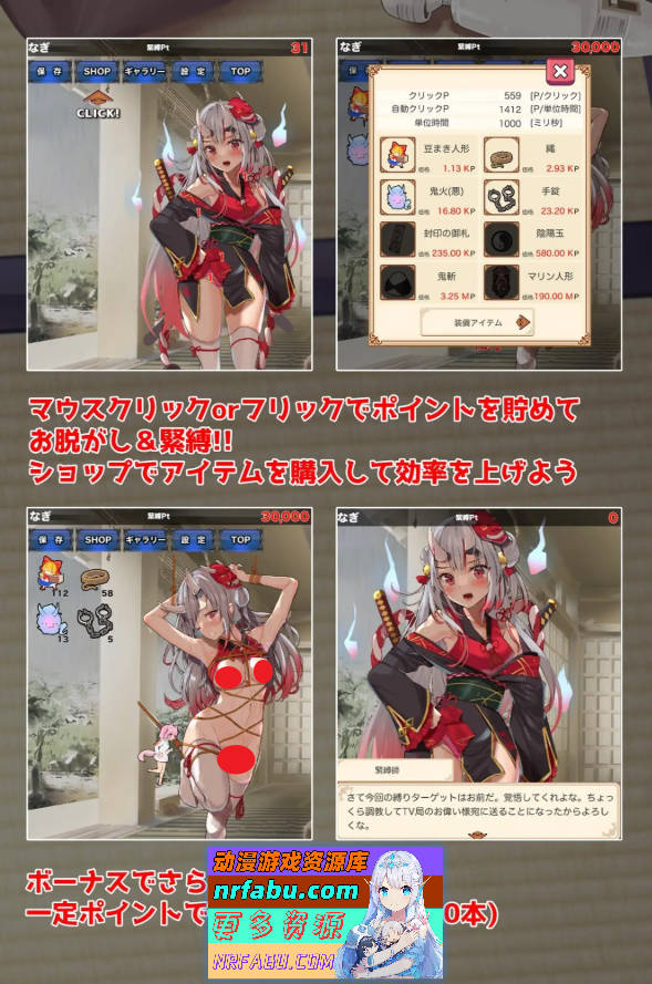 只需不断点击或滑动(晃动鼠标、摩擦手机屏幕等)即可积累绑缚点数。