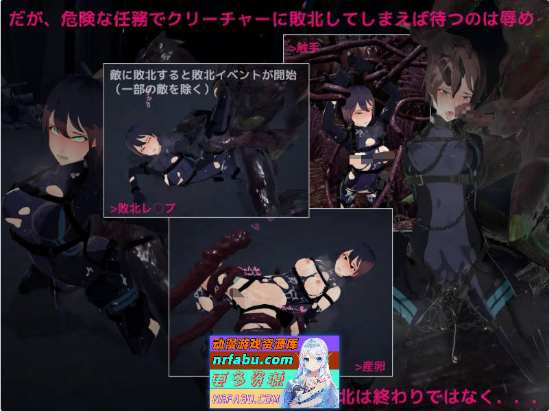 游戏内含7种敌方怪物,其中5种共计搭载28种战败H事件(支持3D动画及视角切换)。