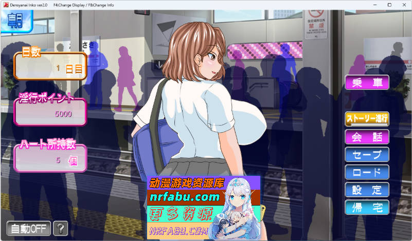 在电车内对辣妹进行性骚扰行为可以积累点数,从而解锁更升级的行为。当快感值达到最大时,辣妹会达到高潮,你便能获得她的心。