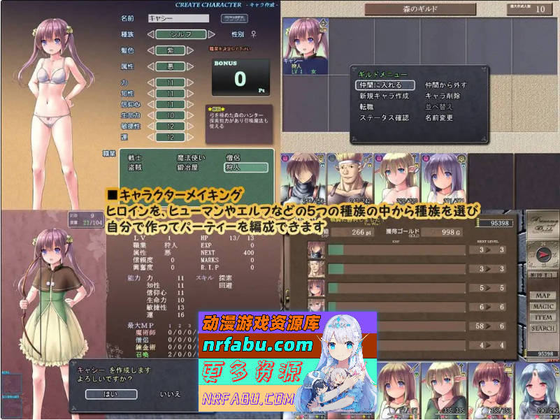 可以从人类、精灵等五个种族中选择,自己决定名字、发色、职业等,随意注册到公会。